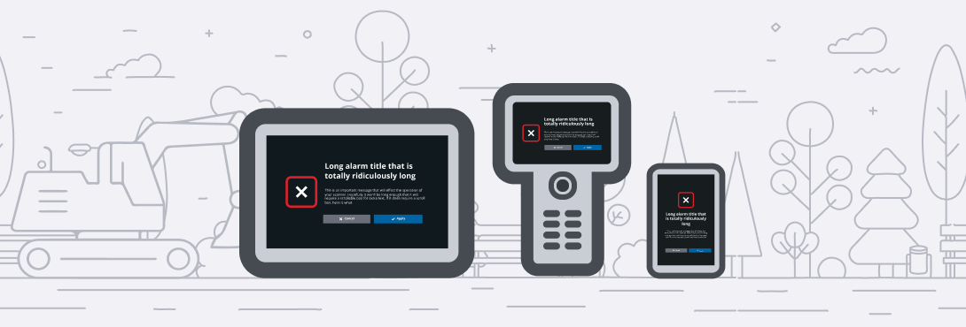 The UI Kit focuses on larger display sizes, cross-reference Mobile Kit for smaller devices or components can be scaled Figma for designers. This brand base must maintain optimal usability, while also allowing flexibility to support Trimble and other OEM (Original Equipment Manufacturers) brand variations. See Global colours for global colors and Type for overview of fonts sizes.